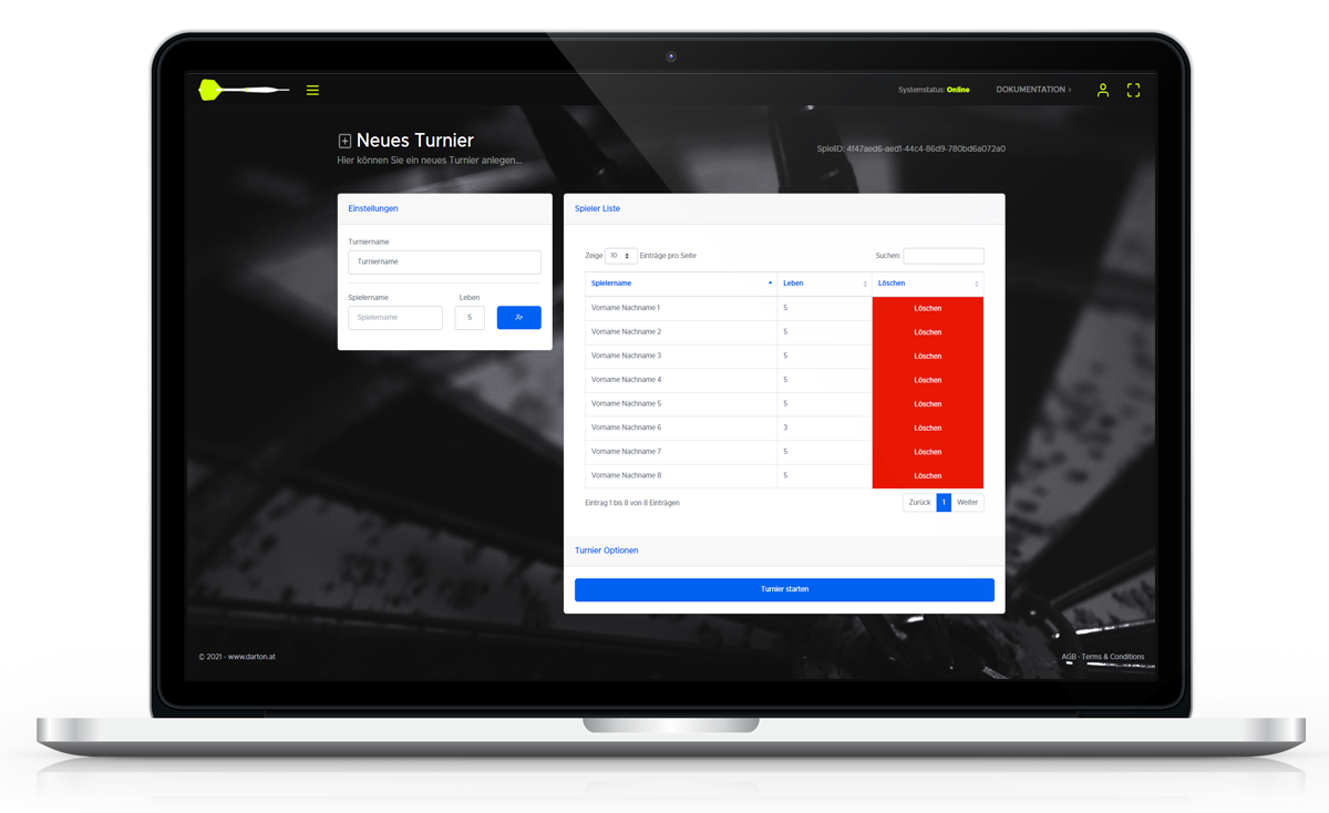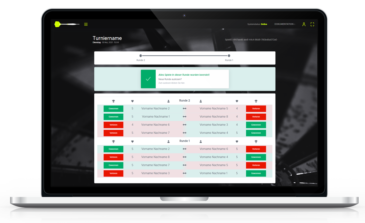 Übersichtliche Turniermaske, einfache Kontrolle über den Turnierablauf!